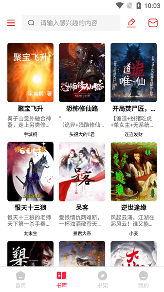 输入书籍或者作者名称搜索自己感兴趣的书籍资源;