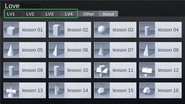 1、进入爱素描App中,先选择需要练习的静物,有适合新手的立体几何,也有适合经验者的苹果、雕塑等。