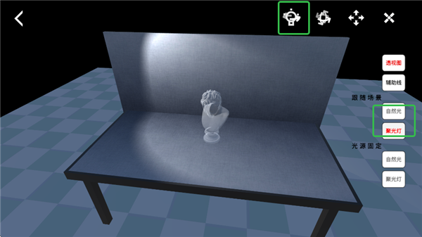 4、在给静物打光时,选择可移动的光源,点击上方按钮移动,调整光源位置。