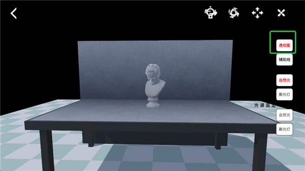 2、选择好进入,点击透视图,即可显示静物的透视状态。