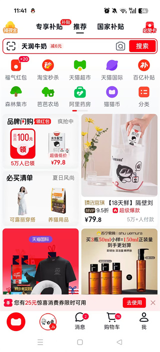 3、在天猫购物有非常多的优惠活动,特殊节日的优惠活动,用户可以参与,让自己用最低的购物成本去购买商品。