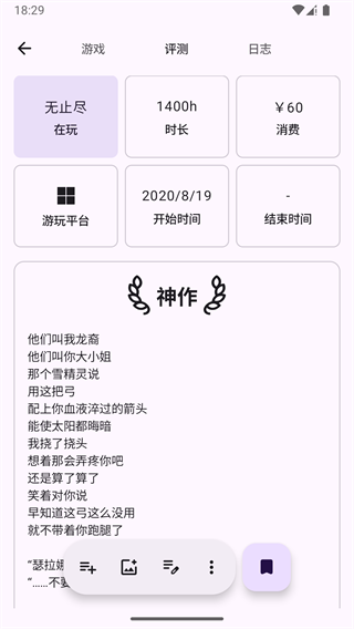 1、 类似于读书笔记或影评,为游戏这一互动媒介提供了相匹配的、深度的回顾与记录工具,提升了爱好的仪式感。