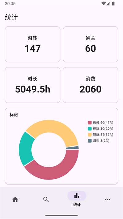 3、生成关于总游戏时长、各平台分布、游戏类型偏好、成就完成度等维度的个性化数据报告与图表。