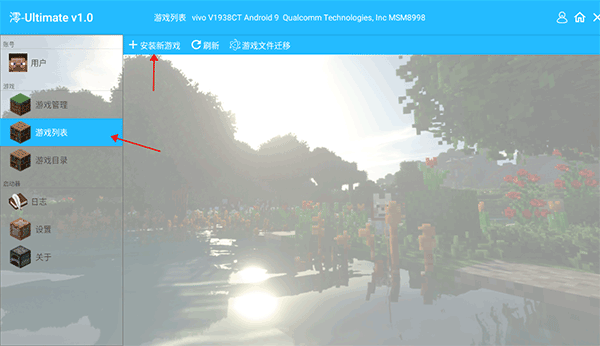 1、打开澪启动器,若手机中尚未安装Java版游戏,点击游戏列表”中的安装新游戏”。
