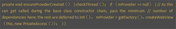 在Android 8.0+系统中,WebView的底层实现已全面转向Chromium。当创建WebView实例时,系统会通过 ensureProviderCreated() 方法加载Chromium动态库,并初始化 WebViewChromium 对象作为实际的功能提供者(mProvider)。这一过程涉及多层优化: