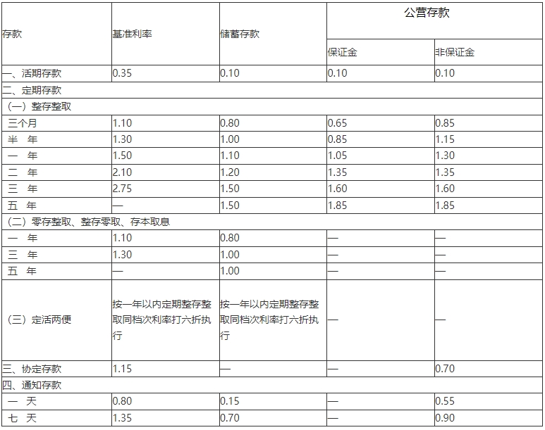 注:实际执行利率请详询重庆银行各营业网点。