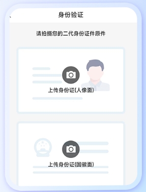 2. 拍照上传二代身份证正反面进行身份验证。
