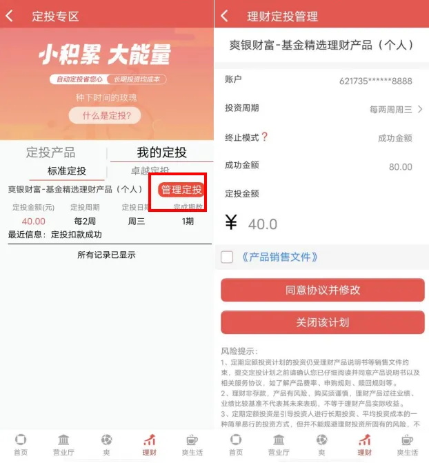 如需调整或终止计划,只需点击对应定投项目下的管理定投”,即可随时修改参数或关闭定投,灵活掌控您的理财节奏。