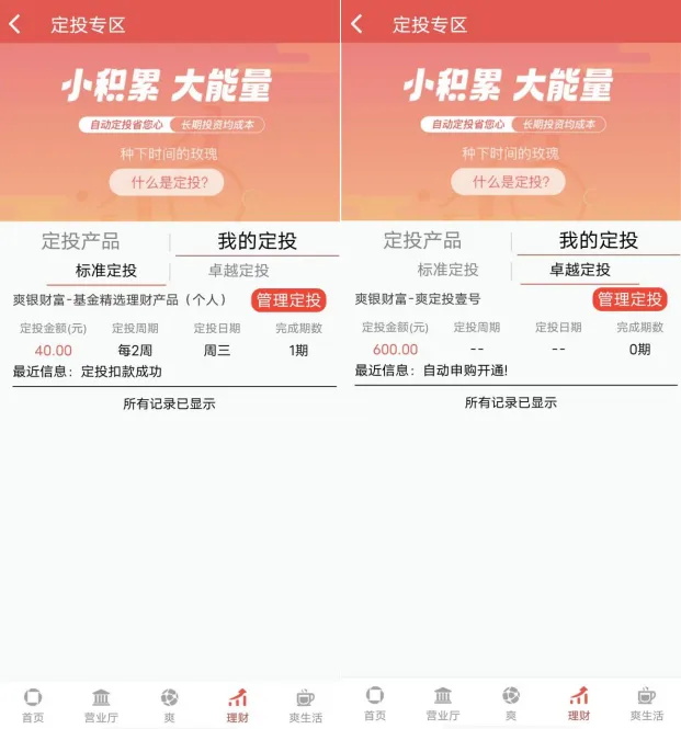 (4)成功金额:累计成功投资金额达到设定值(须为定投金额整数倍)后自动结束。