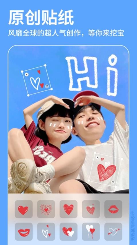 1、使用原创贴纸,软件提供系列原创设计贴纸,用户可选取不同款式对图片进行点缀与装饰。