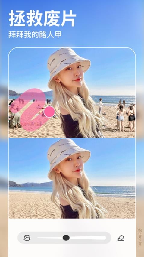 4、使用智能消除,配备智能消除工具,可帮助用户便捷地移除照片中多余的背景物体或路人干扰。