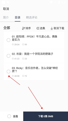 2.点击你要下载的音频。