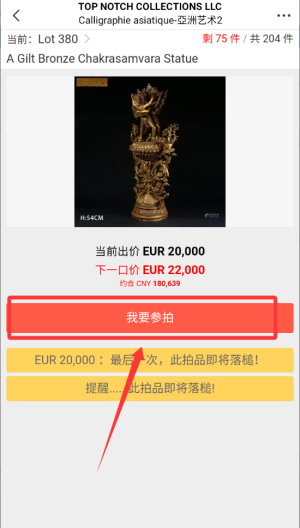 4. 点击红色框内的我要参拍”按钮,即可正式加入竞拍。