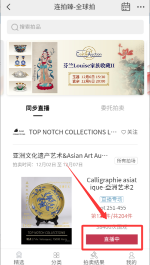 3. 选择直播中”的拍卖会进入详情页。