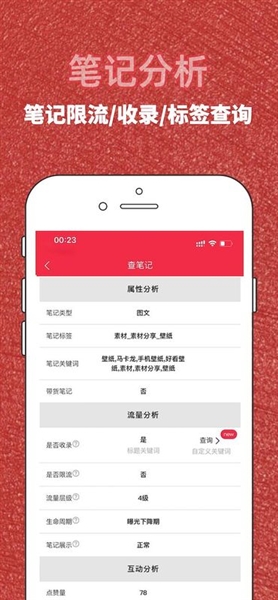 4、可以对小红书笔记的流量、属性、互动等多维数据进行分析查询;