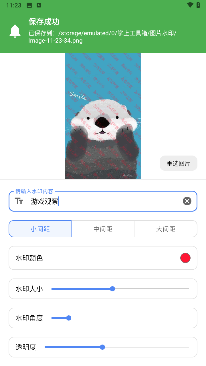 5、稍等片刻,系统处理完成后会弹出保存成功”提示,水印图片已自动存储至本地相册。