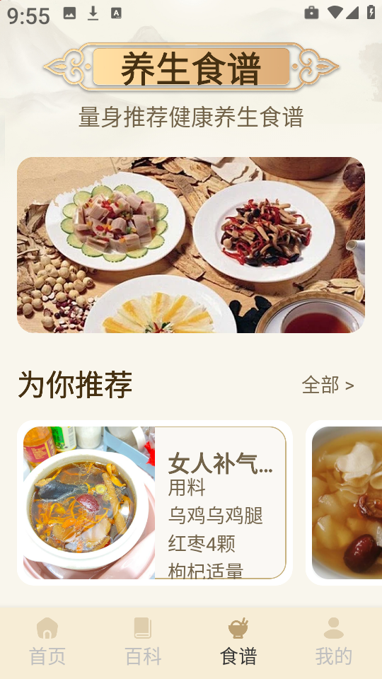 4、切换至底部导航栏的百科”模块,支持关键词搜索,快速获取相关中医理论或病症调理方案。