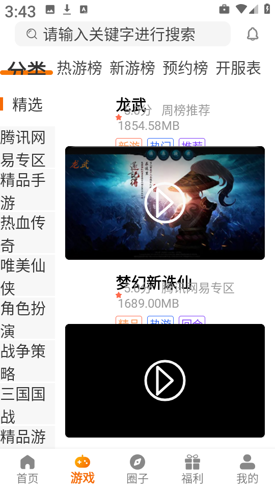 3、选择任意一款感兴趣的游戏,例如梦幻新诛仙”,点击游戏详情页中的下载”按钮即可开始安装。