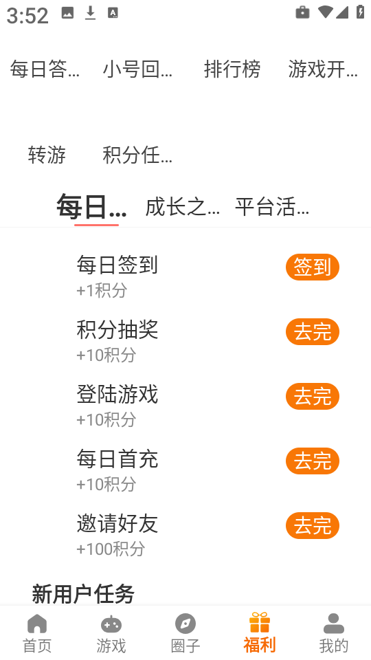 5、点击底部福利”入口,每日签到即可领取积分,完成指定任务还能获得额外奖励,提升游戏体验。