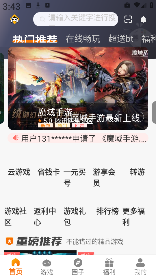 1、设有热门游戏排行榜和个性化推荐模块,助你发现当下最火的手游大作。