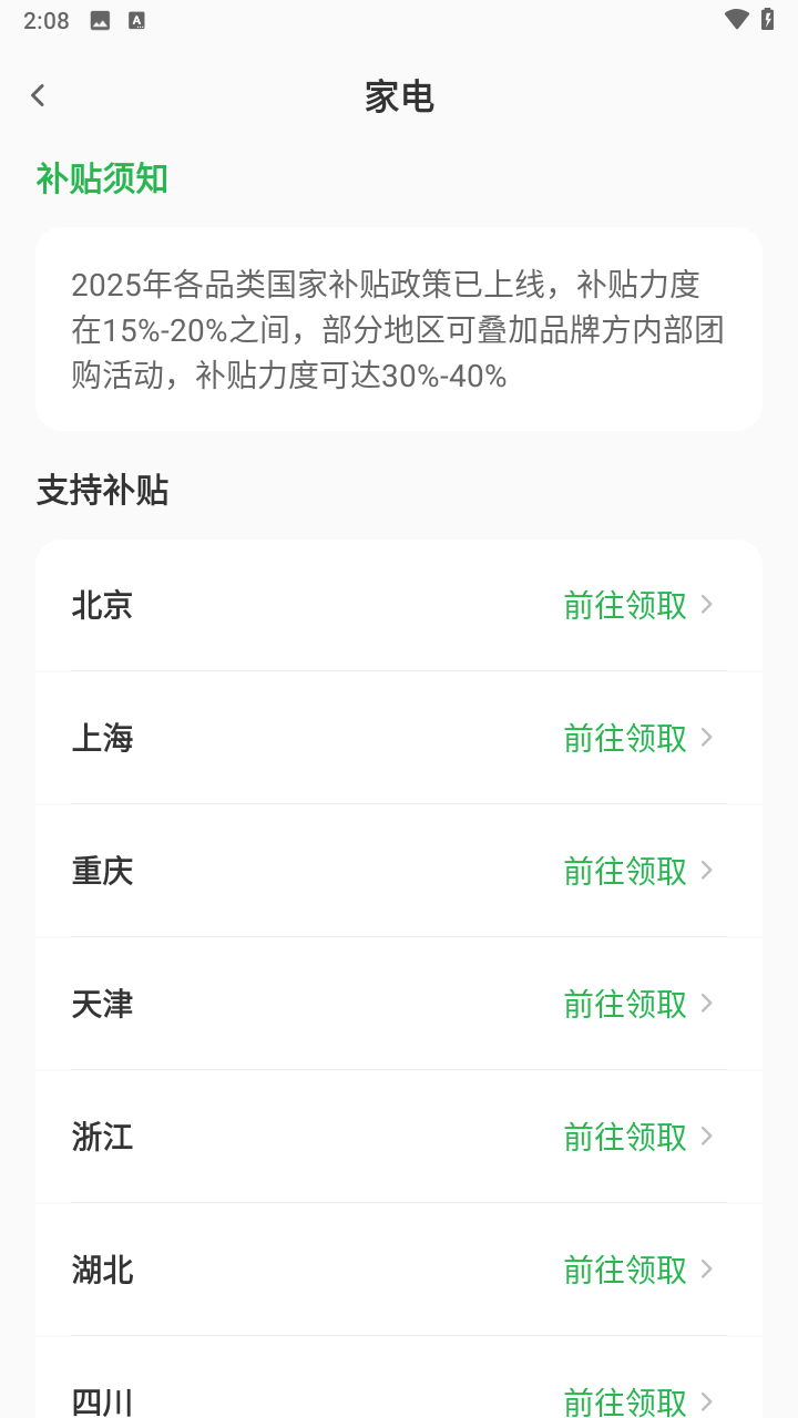 3、只需简单选择所在地区,即可一键获取专属的国补资讯与申领指南,界面简洁明了,操作流畅直观,适合各年龄段人群使用。