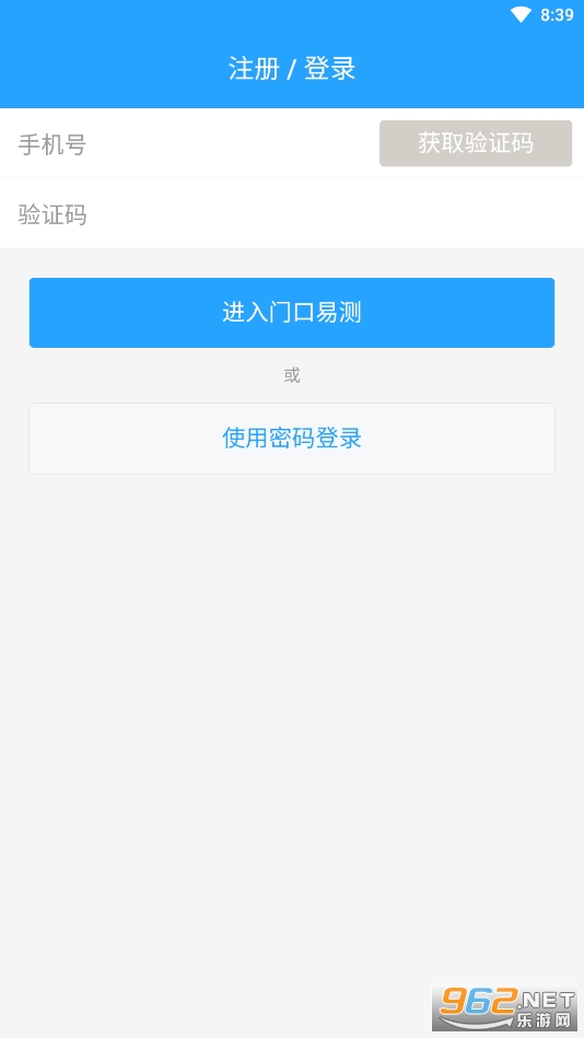 1.下载登录手机扫描下图的二维码,下载门口易测APP。下载完成后进入登录页面。可以选择使用您的手机号和验证码登录,已经注册的用户也可选择使用密码登录。