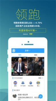 3、是首个突破千万月活的体育APP,在多家第三方互联网数据平台上,处于领先地位。