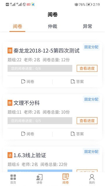 3、选择阅卷”就可以进入到批改试卷的界面。
