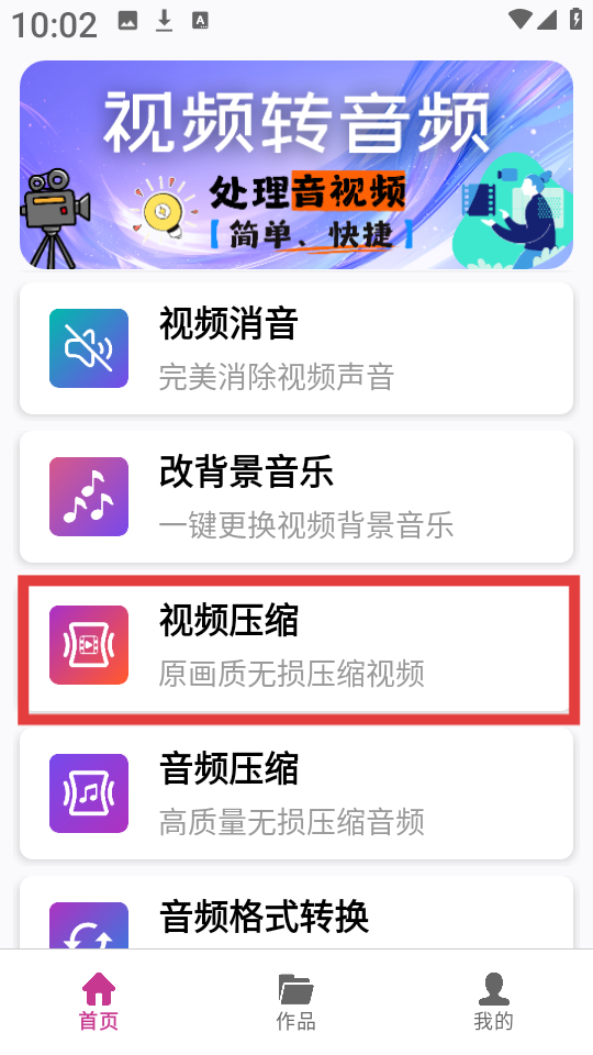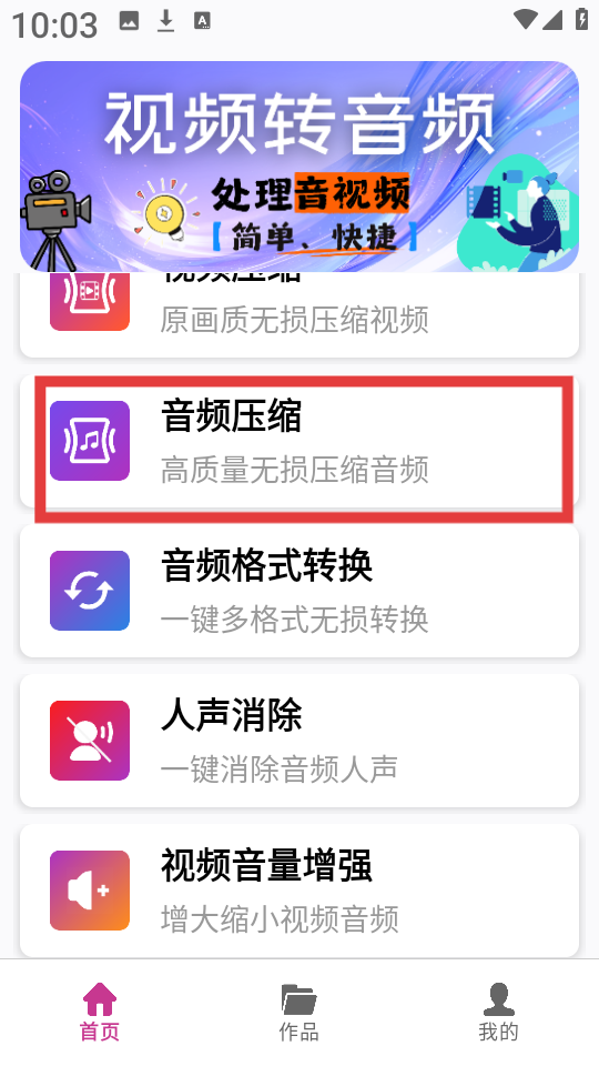1、打开软件后,在主界面找到并点击音频压缩”功能入口。