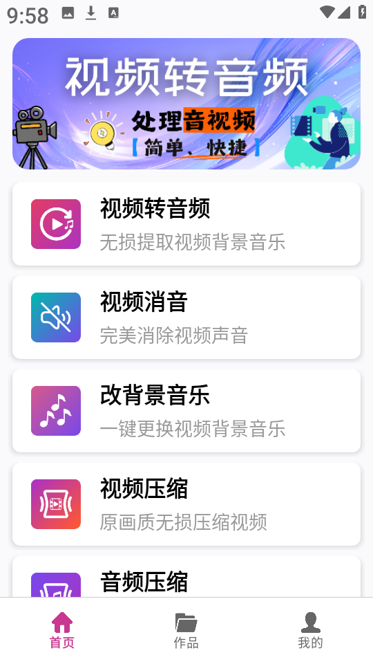 1、请先下载并安装视频转音频提取app,完成后打开应用程序进入主界面。