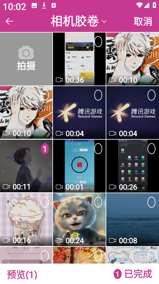 4、从相册中选择需要压缩的视频文件,确认后点击已完成”继续下一步。