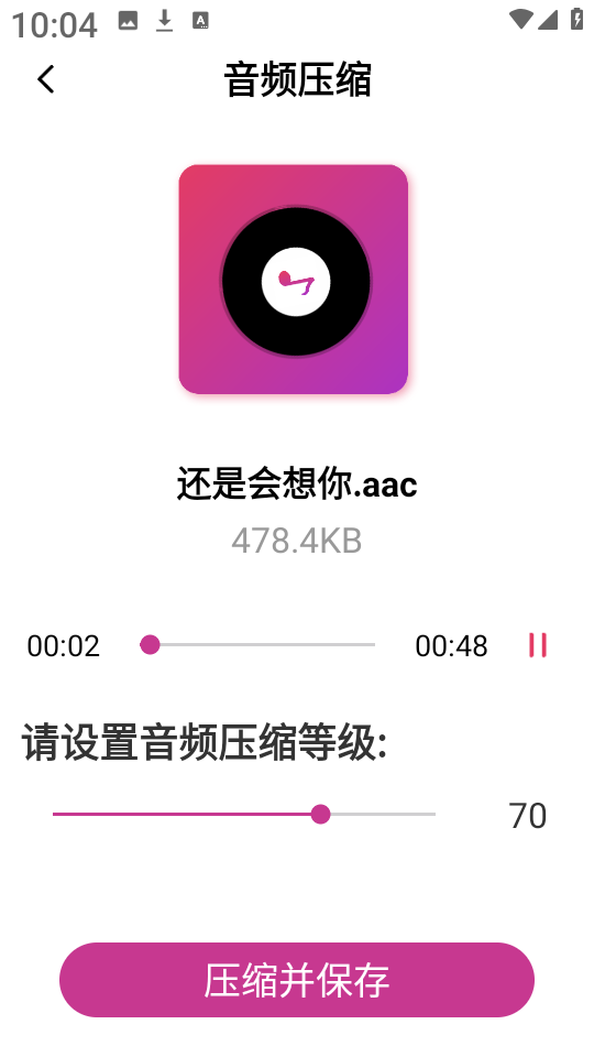 3、系统自动加载音频信息后,直接点击压缩并保存”即可完成高效压缩并导出至设备本地。