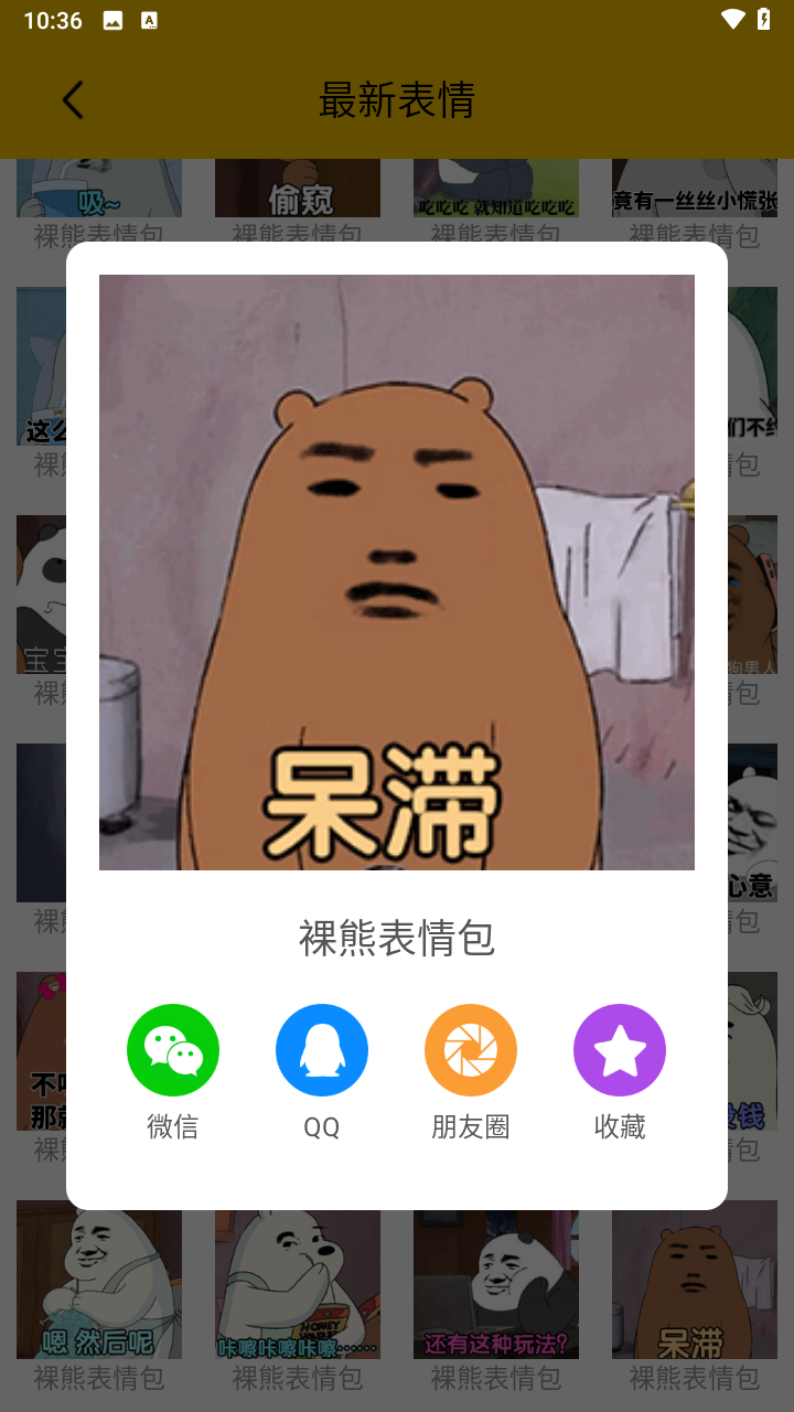 3、挑选心仪的表情包,支持一键收藏或通过社交平台直接分享给好友。