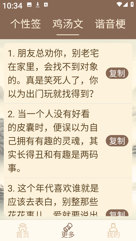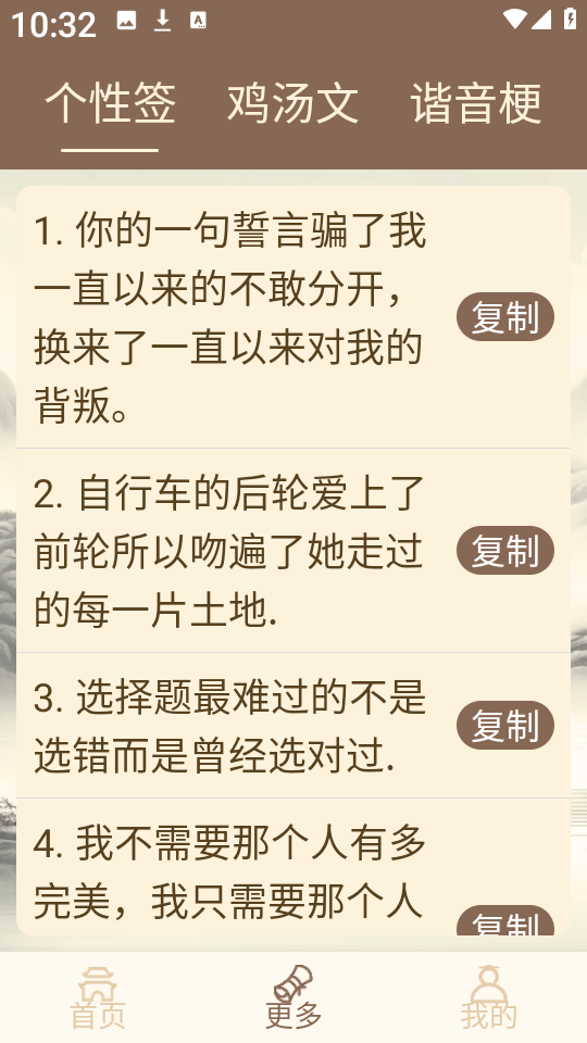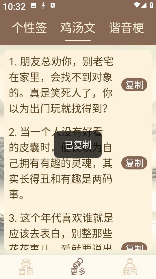 3、挑选一条符合心情或氛围的鸡汤文案,点击右侧复制”按钮,即可快速粘贴到社交平台或聊天窗口。