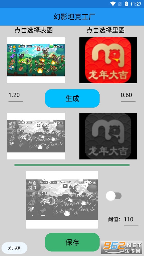 1.生成键两侧的两个数字用于调整生成灰度图片时的亮度系数,要尽量保证表图比里图亮(输入完毕后点击输入法的回车以确认数据)。