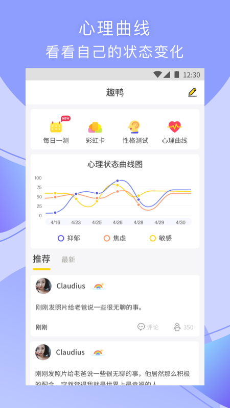 趣鸭app通过做题目来记录个人心理测试,来判断是否拥有心理上的疾病。