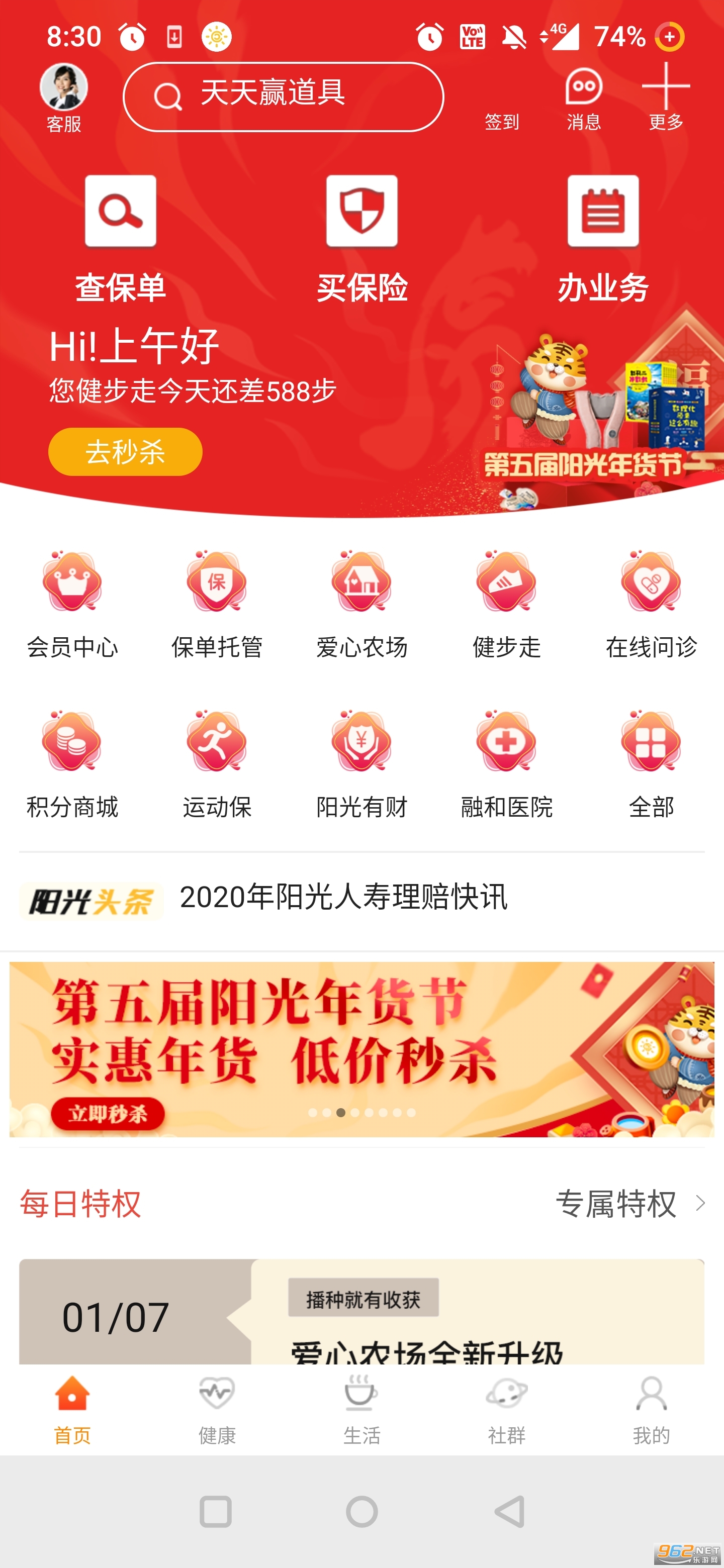 3、活动早知道,阳光客户线上线下活动早知道,随时随地在线报名。