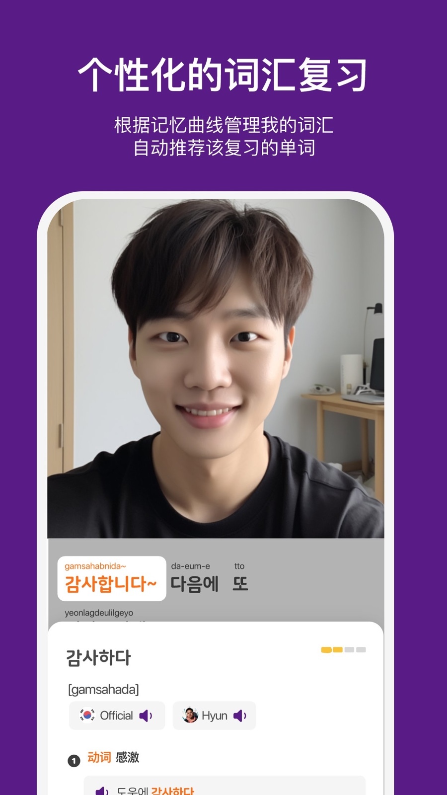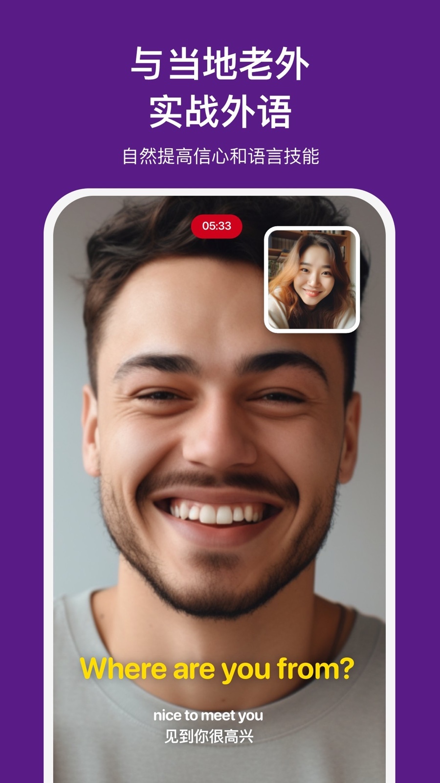 在真实对话场景中使用外语交流变得触手可及,有任何疑问都能随时发起对话。通过拍摄回应视频的方式,与母语者直接互动,极大加速口语反应能力与实际运用水平的提升!