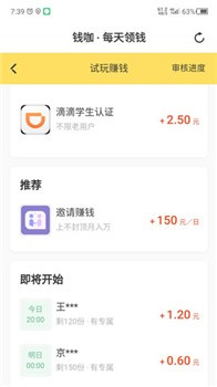 钱咖app这款手赚软件其实是一款已经出了较长时间的平台,现在已经积累了超级多的用户在使用,这里的任务也非常简单,每天有时间时下载几个软件试用几分钟就能完成任务,获得奖励,虽然奖励不是很多,但是积累之后也能赚不少,现在就快来试试吧