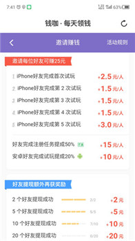 钱咖app只需要动动手指花费几分钟就能完成任务获取收益,苹果手机相比安卓手机奖励更高,每次大约能赚1.5-3R,所以快来邀请你的苹果手机朋友吧!