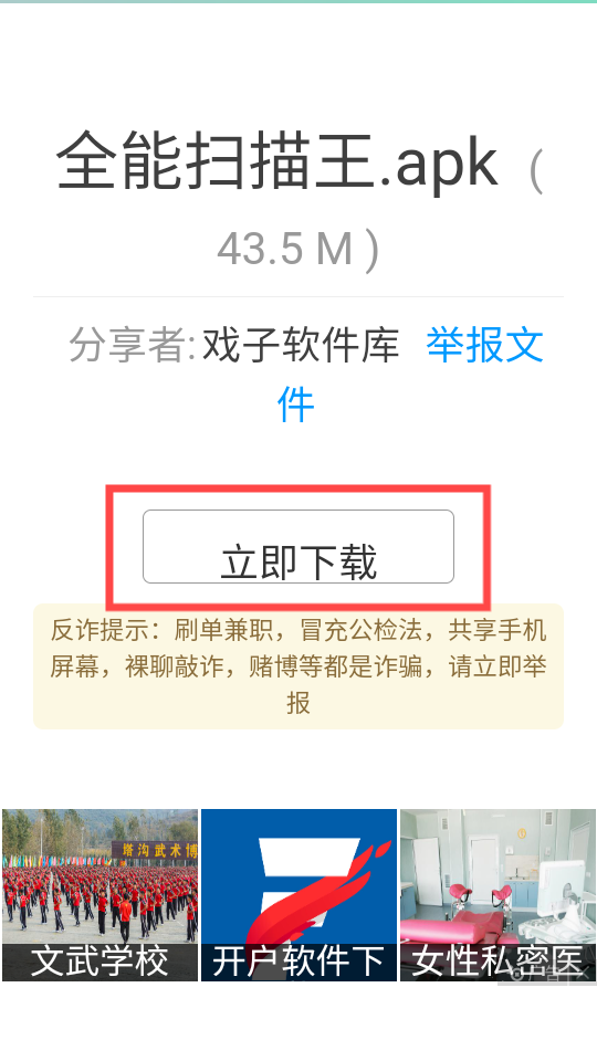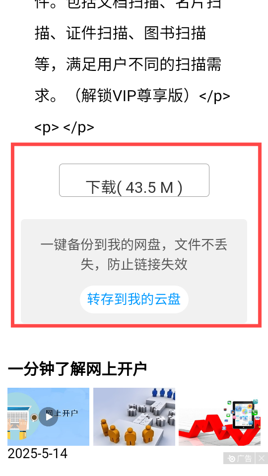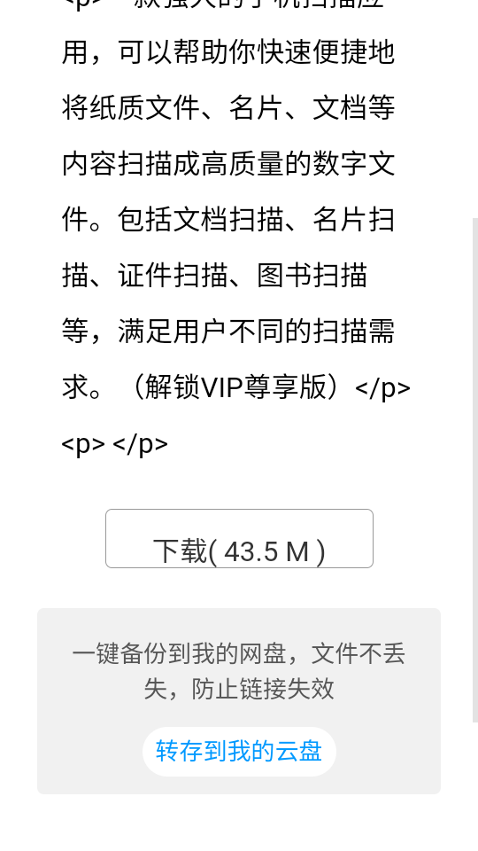 2、在首页中任意挑选一款你感兴趣的应用,比如我们选择全能扫描王”作为示例,点击对应软件条目进入详情页,随后点击下载”按钮开始操作。