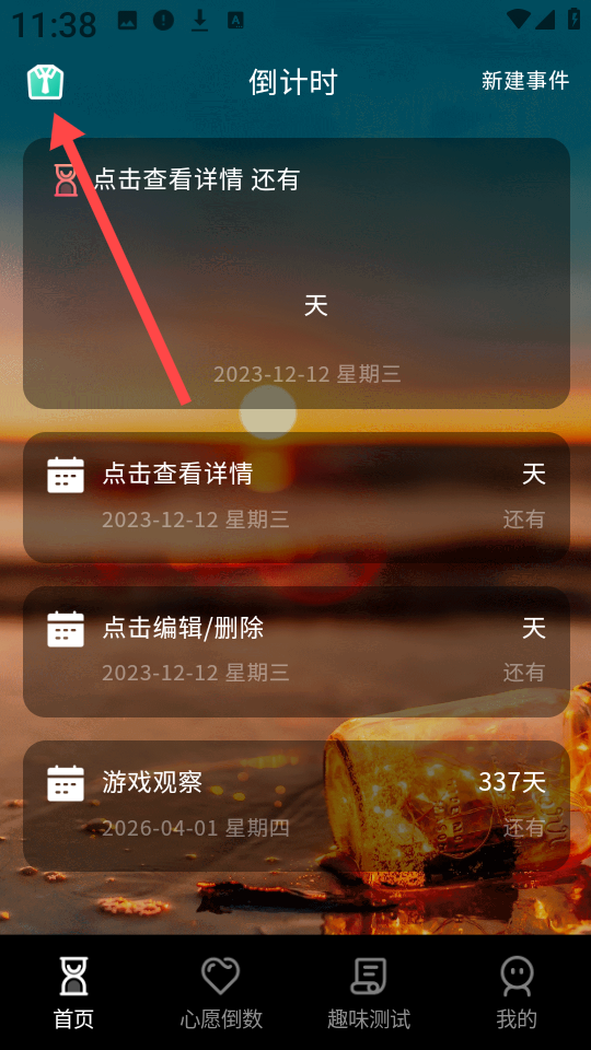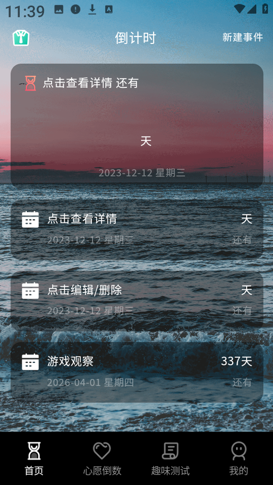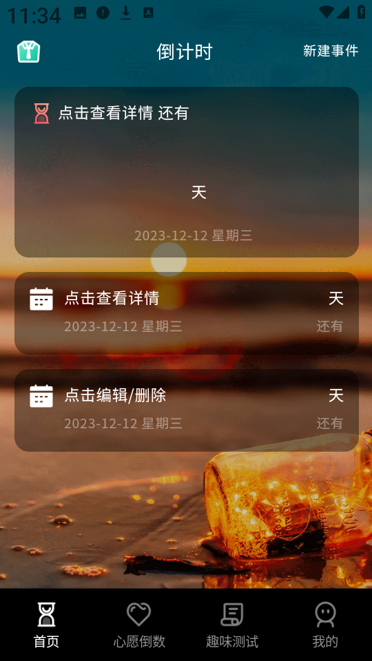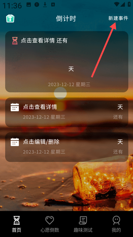 2、点击首页右上角的新建事件”按钮,开始创建属于你的个性化倒计时任务。