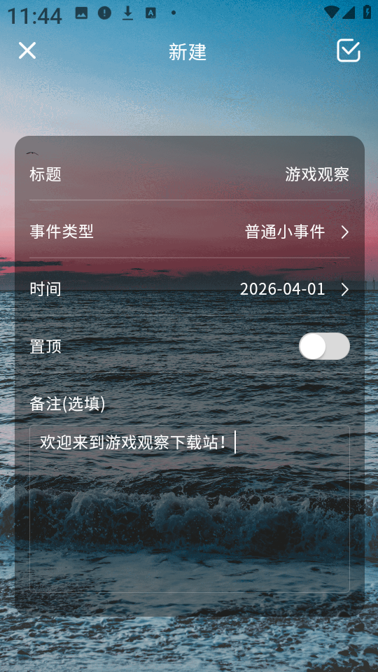 3、填写事件标题、选择类型(如考试、生日或纪念日)、设定目标日期,并可添加备注说明以增强提醒效果。
