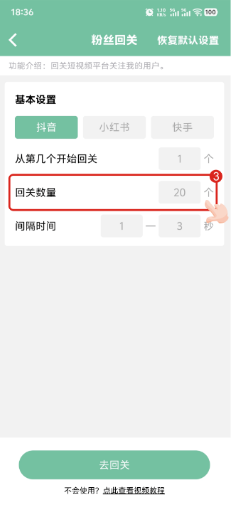 3、回关数量是回关粉丝的用户数,这里默认设置20个。