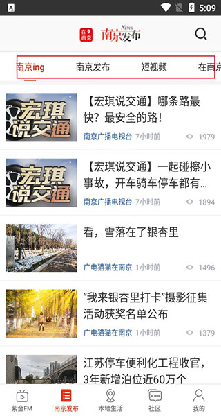 3、向右滑动切换至南京发布板块,第一时间掌握城市热点动态与权威消息;