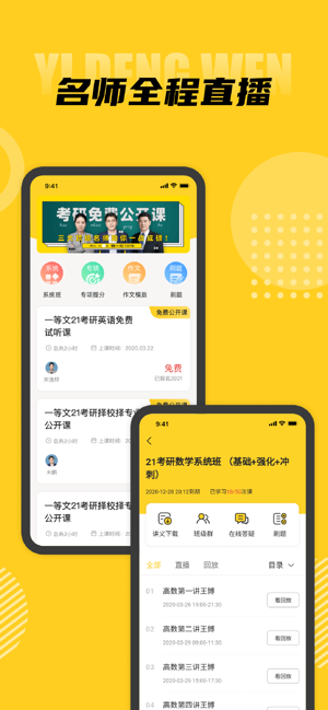 一等文一款针对线上教育辅导的手机软件,海量名师资源针对性的辅导教学,历年真题模拟。