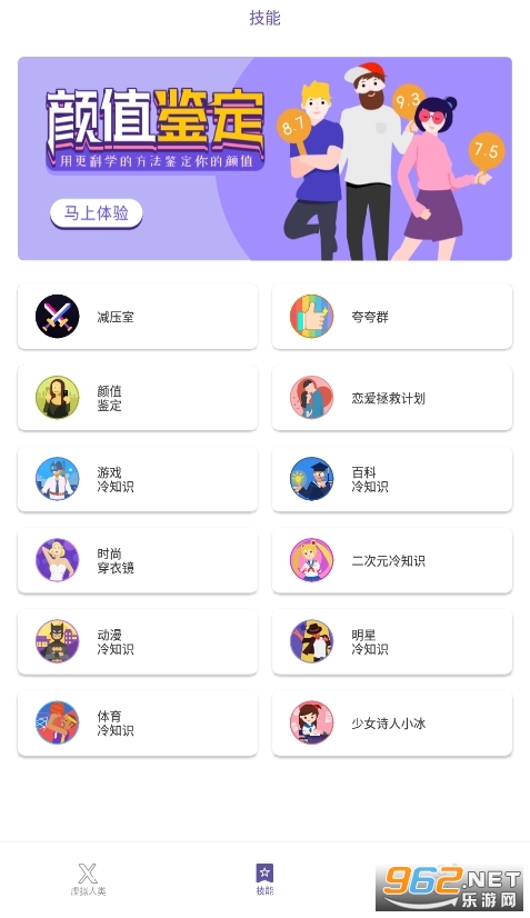 3.各种依托于人工智能技术的趣味技能供你体验。如颜值鉴定、少女诗人小冰。