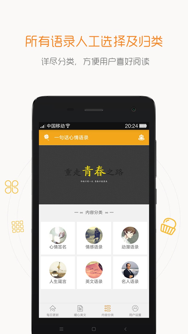 一句话心情语录app是一款非常不错的手机经典语录软件。