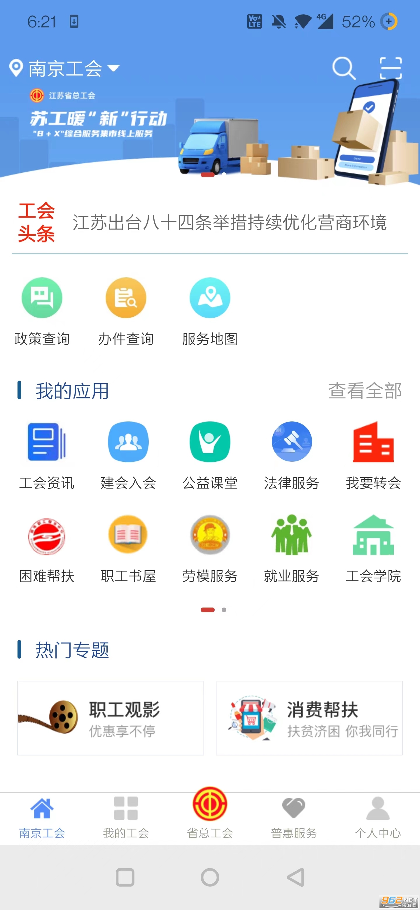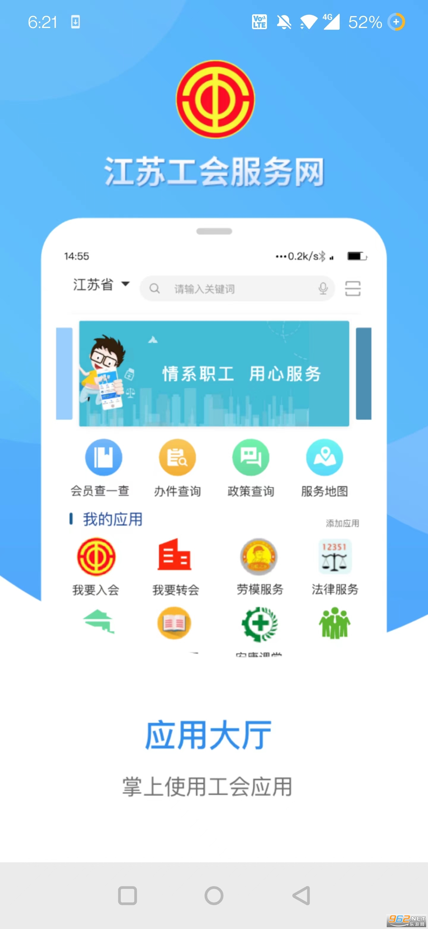 江苏工会app集入会转会、帮扶救助、我要维权、心理咨询、职工e家、就业服务、在线学习等功于一体,欢迎广大用户下载使用!