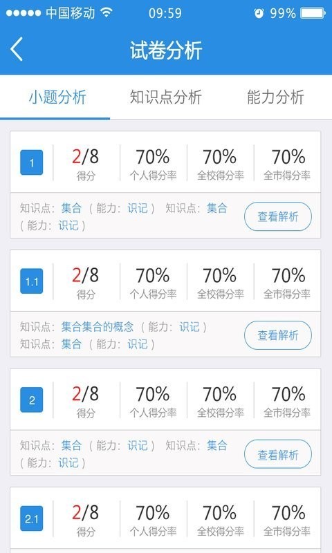 3、通过手机客户端,清楚直观地发现学生在某些知识板块或能力层次上的问题。
